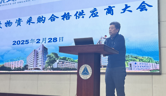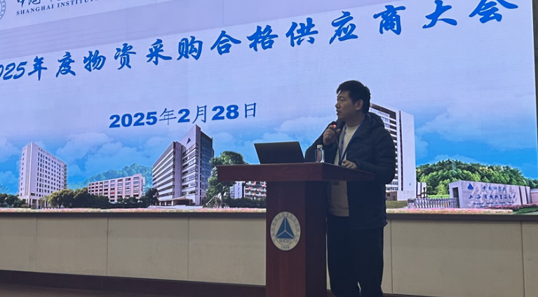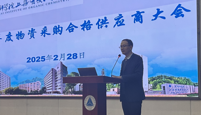 2月28日,中国科学院上海有机化学研究所(以下简称“上海有机所”)召开2025年度物资采购合格供应商大会。上海有机所纪委书记石岩森、监督审计处处长黄少胥、条件保障处全体相关工作人员及80余名合格供应商代表应邀参加会议。此次合格供应商大会由条件保障处和监督审计处联合举办,会议由条件保障处负责人王大伟主持。