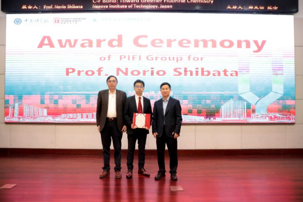 2025年4月22日上午,中国科学院国际交流计划(PIFI)杰出团队入选者、日本名古屋工业大学 Norio Shibata教授受邀访问上海有机所,并作题为“C-F Bond: Toward Greener Fluorine Chemistry”的学术报告。报告由卿凤翎院士主持,游书力院士为Norio Shibata教授颁发PIFI杰出团队荣誉证书。