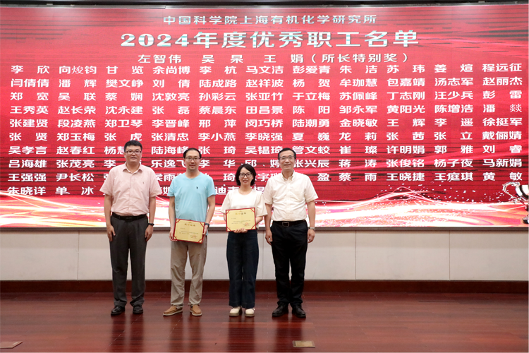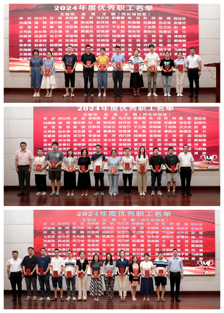 职代会上还举行了颁奖仪式,人力资源处副处长(主持工作)蒋咏文宣读了2024年度优秀职工获表彰名单。所长、党委书记胡金波,副所长刘菲,副所长、党委副书记李昂,纪委书记石岩森、工会主席张新刚共同为2024年度优秀职工颁发了荣誉证书。