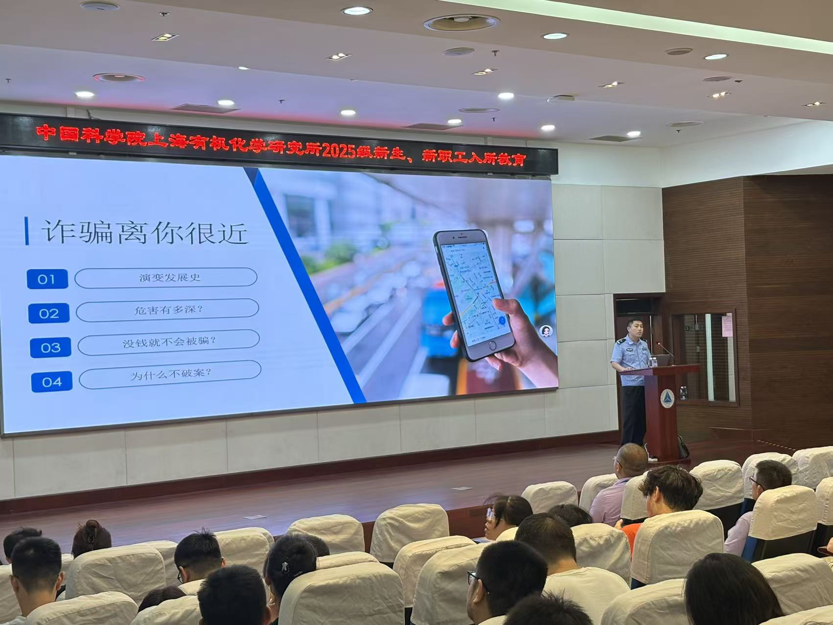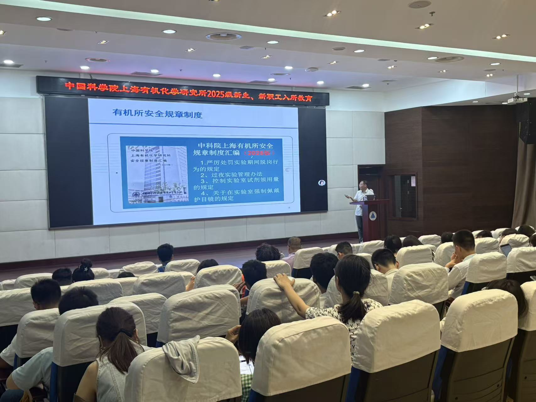 为切实提高新入所学生职工的安全意识,全面增强其自我防护能力,确保大家安全、顺利地融入新的学习与工作环境,8 月 25 日下午,上海有机所组织开展 2025 级新生(含联培生)及新职工安全教育活动,共有400多人积极参与。