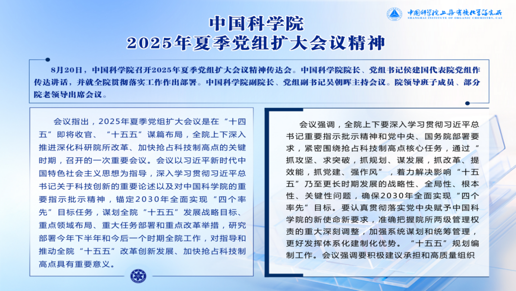 为深入学习贯彻中国科学院2025年夏季党组扩大会议精神,扎实推进巡视整改工作,严格落实深入贯彻中央八项规定精神学习教育要求,有序做好研究所新一届党委、纪委换届工作,2025915日,上海有机所召开2025年第三季度党支部书记会。所长、党委书记胡金波,副所长、党委副书记李昂,纪委书记石岩森,各党支部(总支)书记及党政办公室、监督审计处相关人员参加会议。会议由副所长、党委副书记李昂主持。