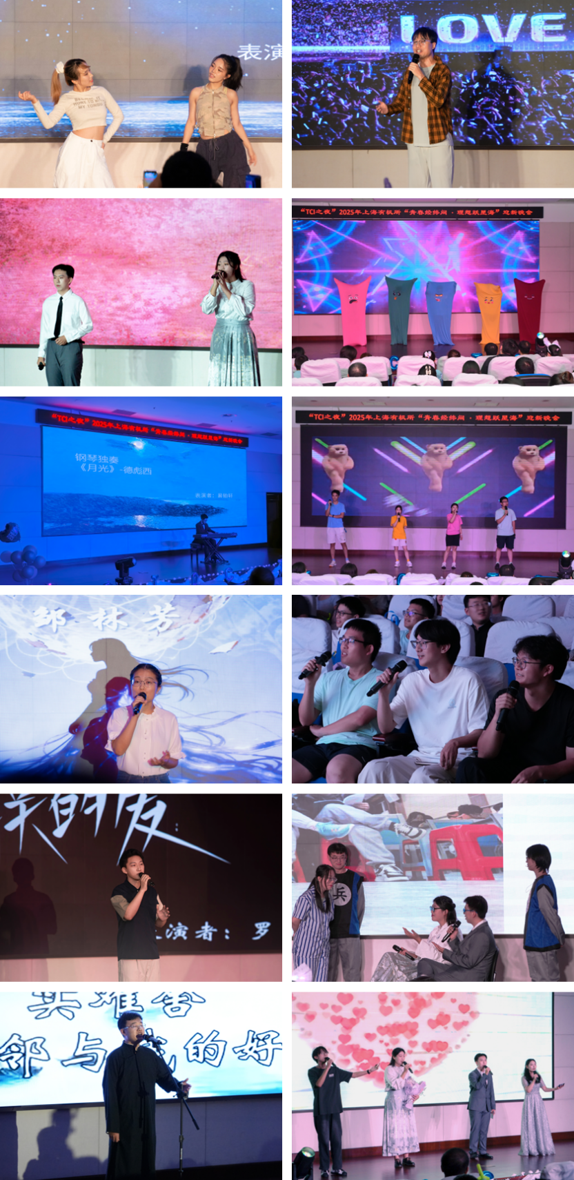 新生们精心录制的自我介绍视频风格各异、妙趣横生,拉开了晚会帷幕。本场晚会节目形式多样、内容丰富,充分展现了上海有机所学子多才多艺、朝气蓬勃的精神风貌。付可洋、王杨杨带来的开场舞串烧《Like Jennie》节奏感强烈、动作干净利落,瞬间点燃现场气氛;王安逵演绎的《这就是爱》深情款款,引发共鸣;隋卓楠、宫筠昇合作演唱的《身骑白马》融合传统戏曲与流行元素,深远流长;创意十足的《被套舞》则以幽默形式带来满场欢笑。易铂轩的钢琴独奏《月光》勾勒出静谧悠远的意境,而黄灿灿等同学献唱的《凤凰传奇串烧》则迅速带动全场大合唱;邹林芳独唱的《破茧》以有力旋律唱出成长的力量;孙懿宁等人的配音表演《估分》融入校园元素,真实有趣贴近生活,罗邦科演唱的《永不失联的爱》温暖动人,传递出对真挚情感的坚守与渴望;舞台剧《反卷风暴》以诙谐方式反思现实议题,获得全场掌声雷动;吕孟霖演出的京剧《三家店》选段韵味十足,展现国粹魅力。最后,郭星宇等同学带来的合唱《像你这样的朋友》温情脉脉,为演出画上圆满句号。