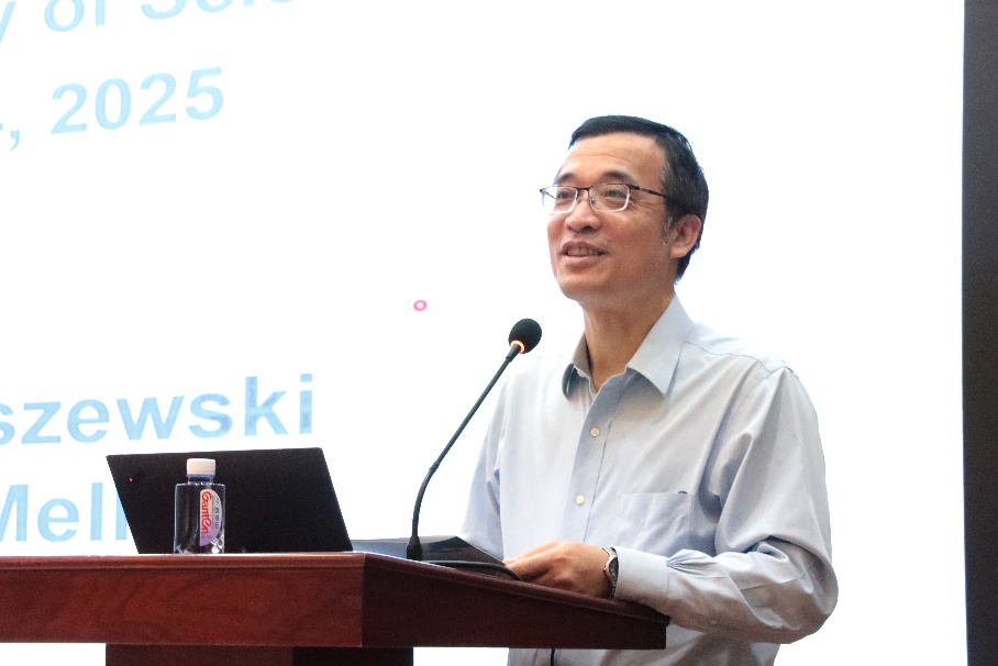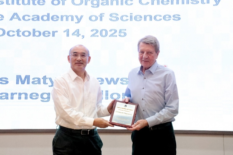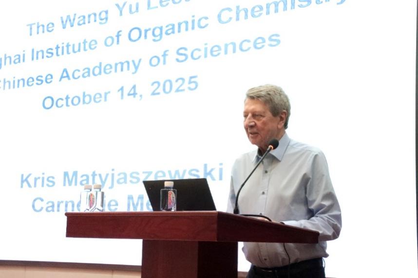 2025年10月14日,美国国家科学院院士、美国国家工程院院士、卡内基梅隆大学(Carnegie Mellon University) Krzysztof Matyjaszewski教授应邀访问上海有机所,并作题为“Macromolecular Bottlebrushes by Atom Transfer Radical Polymerization”的汪猷科学讲座。讲座由胡金波所长主持,唐勇院士为Matyjaszewski教授颁发纪念奖牌,300余名师生到场听讲。