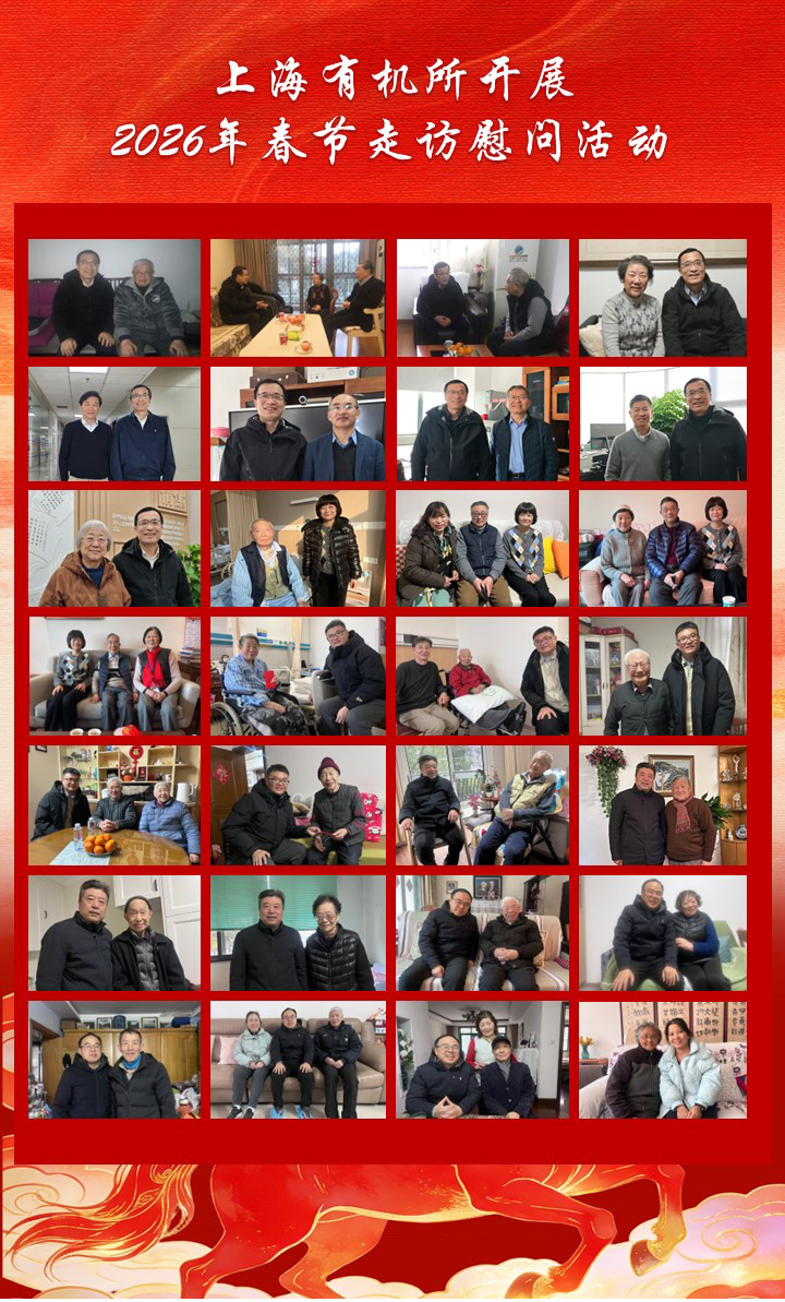 新春将至,暖意先行。为深入践行党的二十大精神,落实中共中央组织部、中国科学院党组及院离退休干部工作局相关部署,丙午马年新春来临前夕,中国科学院上海有机化学研究所新一届领导班子牵头开展2026年春节走访慰问,向全所离退休老干部、老党员、老劳模、老职工、生活困难党员群众及科学家代表,送上新春祝福与组织关怀。