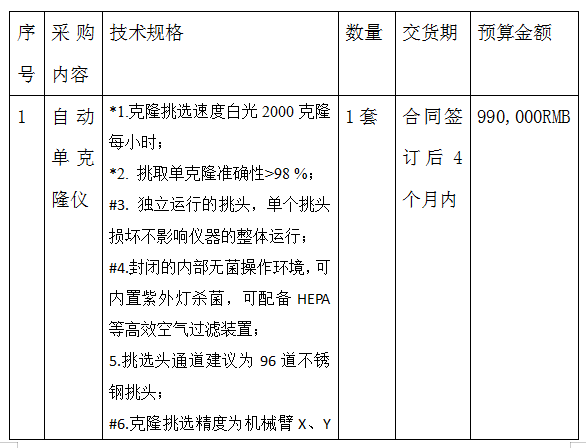 采购内容:自动单克隆仪