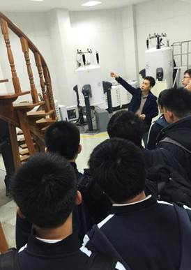 兴趣组的同学们来到800兆核磁共振谱仪房间,认真听工作人员介绍仪器的组成和构造,得知仪器的磁场强度是地球磁场的37万倍时,纷纷惊叹不已。同学们又了解到医院里也有核磁共振仪,但不是用来测定分子结构,而是用来检查病人的大脑,能够看到很细微的变化,而且没有任何副作用,在医疗诊断中有着举足轻重的地位。接下来工作人员给同学们展示了乙醇、葡萄糖、维生素B2和蛋白质分子的一维氢谱,了解这一技术可以辨别分子内同一中元素的不同原子;正是这一灵敏的强大功能,帮助科学家们解析出复杂分子的结构。有了这种直观的感同学们又近一步了解了运用核磁共振技术解析蛋白质结构思路:核磁共振测出分子内氢原子间的距离,结合计算机软件模拟,得到符合实验观测数据的分子构象。虽然核磁共振技术很抽象,短短的一节课无法深入的了解,但还是激发了不少同学的兴趣,提出了一些有趣的问题,比如我们的仪器平时会关机吗,可以使用多少年,是不是每时每刻都要工作人员在场?工作人员为他们一一解答:仪器是高度自动化,只需要很少的人力维护,常年连续工作,甚至可以使用几十年。听到仪器如此方便,对科学技术的快速发展赞叹不已。