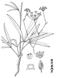 2.松叶西风芹与竹叶西风芹的区别为:叶片为二至四回三出式全裂,末回裂片狭线形,极少为线状披针形,长0.7-6.5cm,宽达3mm。 3.多毛西风芹与前2种的区别为:叶片3全裂,不成羽状分裂,裂片线状披针形,长7-13cm,宽5-10mm;主脉突起,两面有白色短硬毛,以背面边缘及脉上较多;茎上叶细小,线状披针形。花序梗有毛;总苞片和小总苞片均5-7,密被白色粗毛;花瓣外面有白色柔毛。分生果卵状近球形,果柄密被白色粗毛;每棱槽内油管1,合生面油管2。 |