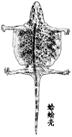 蛤蚧为壁虎科动物蛤蚧除去内脏的全体。 蛤蚧为壁虎科中最大的一种,全长30cm左右,体长与尾长略相等或尾略长。头宽大,略呈三角形,吻端圆凸;耳孔椭圆形,约为眼径之半;上唇鳞12~14,第1枚入鼻孔。眼大,突出;口中有许多小齿。通身被覆细小粒鳞,其间杂以较大疣鳞,缀成纵行;腹面鳞片较大,略呈六角形,四肢指、趾膨大,成扁平状,其下方具单列皮肤褶襞,除第1指趾外,均具小爪,指间及趾间仅有蹼迹。雄性有肛前窝20余个,尾基部较粗,肛后囊孔明显。躯干及四肢背面砖灰色,密布橘黄色及蓝灰色斑点;尾部有深浅相间的环纹,腹面白色而有粉红色斑。 蛤蚧多栖息于山岩罅隙或树洞内,也见于人家屋间。以昆虫、小形蜥蜴等为食。分布于福建、台湾、广东、广西、云南。 |