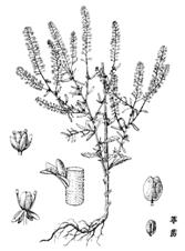 葶苈子为十字花科植物葶苈、琴叶葶苈和播娘蒿的种子。 1、葶苈是一年生或二年生草本,高5-30cm。茎直立,或自基部具多数分枝,被白色微小头状毛。基生叶有柄,叶柄长1-2cm;叶片狭匙形或倒披针形,一回羽状浅裂或深裂,长3-5cm,宽1-1.5cm,先端短尖,边缘有稀疏缺刻状锯齿,基部渐狭;茎生叶披针形或长圆形,中部叶片长1.5-2cm,宽2-5mm,基部稍宽,无柄,贴茎生,边缘有疏齿;最上部叶线形,先端尖,边缘少有疏齿或近于全缘;两面无毛或疏被头状毛。总状花序顶生,果期可延长至5cm;花小,排列疏松;萼片4,近卵形,边缘白色膜质状,外面有弯曲的白色柔毛;花瓣不存或者退化成丝状,比萼片短;雄蕊2或4,等长;蜜腺4,短小;雌蕊1,子房卵圆形而扁,无花柱,柱头圆形而扁。短角果卵圆形或椭圆形,长2-3mm,扁平,顶端微凹,宿存极短花柱,果瓣顶部具极狭翅,假隔膜宽不到1mm。种子椭圆状卵形,表面平滑,棕红色或黄褐色。花期5-6月,果期6-7月。 2、琴叶葶苈是一年生或二年生草本,高20-50cm。茎直立,单一,表面具柱状腺毛;上部分枝,枝上疏生短柔毛或近于无毛。叶互生;基生叶具柄,叶柄长1-1.5cm;叶片倒披针形,长1-5cm,羽状分裂或大头羽状分裂,裂片大小不等,卵形或长圆形,基部渐狭,边缘有锯齿,两面有短伏毛;茎生叶有短柄,叶片倒披针形或线形,长1.5-5cm,宽2-10mm,先端急尖,基部渐狭。总状花序顶生,花多数;萼片4,绿色,卵形或椭圆形,长约1mm;花瓣4,白色,倒卵形,和萼片等长或稍长;雄蕊2或4,近等长,长1.5-2mm;雌蕊1,子房卵圆形而扁,2室,花柱不明显,柱头头状。短角果近圆形,长3mm,宽1-2mm,扁平,先端微凹,边缘有窄翅,花柱极短。种子每室1粒,卵形,长约1mm,光滑,红棕色,边缘有白色窄翅。花期4-5月,果期6-7月。 3、播娘蒿为一年生或二年生草本,高20-80cm。全株呈灰白色。茎直立,上部分枝,具纵棱槽,密被分枝状短柔毛。叶轮廓为长圆形或长圆状披针形,长3-7cm,宽1-4cm,二至三回羽状全裂或深裂,最终裂片条形或条状长圆形,长2-5mm,先端钝,全缘,两面被分枝短柔毛;茎下部叶有叶柄,向上叶柄逐渐缩短或近于无柄。总状花序顶生,具多数花;萼片4,条状长圆形,先端钝,长约2mm,边缘膜质,背面有分枝细柔毛;花瓣黄色,匙形,与萼片近等长;雄蕊6,几与花瓣等长,基部并有爪;雌蕊1,子房圆柱形,花柱短,柱头呈扁压的头状。长角果圆筒状,长2.5-3cm,无毛,稍内曲,与果梗不成直线,果瓣中脉明显。种子每室1行,形小,多数,长圆形,稍扁,淡红褐色,表面有细网纹,潮湿后有粘胶物质。花、果期为4-7月。