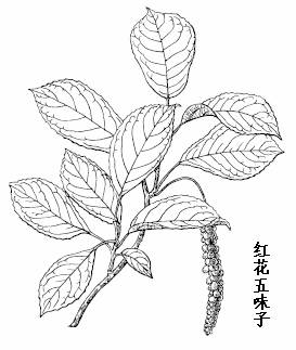 红花五味子是落叶木质藤本。幼枝紫色或褐色,有棱,老枝灰褐色,近圆柱形。叶柄长1-3cm;叶片倒卵形或椭圆形至长圆状披针形,长(4-)6-15cm,宽(2-)3-7cm,先端急尖或渐尖,基部楔形,边缘有明显的腺状锯齿或有时全缘,上面深绿色,下面灰绿色或苍白色,网脉明显在下面凸起。花单性,雌雄异株;花单生或2-3朵簇生,深红色,直径2-3cm,花被5-8,排成2-3轮;雄蕊40-60,着生于长椭圆形花托上,排成4-7列;雌蕊心皮60-100。聚合果果序轴粗壮,直径6mm,长9-18cm,小浆果成熟时球形,红色。种子2,肾形,种皮光滑。花期5-6月,果期8-10月。 生于2500-3400m的山地杂木林中。分布于湖北、四川、云南、西藏。 |