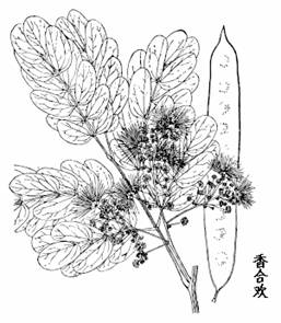 药典名称 独脚金鸡 英文名称 无 拉丁名称 Albizia odoratissima(L. f.) Benth. 性味归经 味甘、苦,性平。 临床应用 治风湿性关节炎、跌打骨折、外伤出血、疮疡、疥癣和失眠。 临床禁忌 尚未见报道。 天然药物来源 香合欢是常绿大乔木,高5-15m,无刺。小枝初被柔毛。二回羽状复叶;总叶柄近基部和叶轴的顶部1-2对羽片间各有腺体1枚;羽片2-4(-6)对;小叶6-14对,纸质,长圆形,长2-3cm,宽7-14mm,先端钝,有时有小尖头,基部斜截形,两面稍被贴生、稀疏短柔毛,中脉偏于上缘,无柄。头状花序排成顶生、疏散的圆锥花序,被锈色短柔毛;花淡黄色;花萼长约为花冠的五分之一;花冠长约5mm,裂片披针形;雄蕊多数;子房被锈色柔毛。荚果长圆形,长10-18cm,宽2-4cm,扁平,嫩荚密被极短的柔毛,成熟时变稀疏。种子6-12颗。花期4-7月,果期6-10月。 为低海拔疏林中常见树种,分布于福建、广东、广西、贵州、云南。 化学及生物研究进展 化合物成分:香须素(odoratissimin)等。 药理作用: ★抗菌 ★抑制血小板聚集 ★杀虫 参考文献 ①中华本草 ②中药数据库(中药创新中心、TCMCD-2009) ③MDL数据库