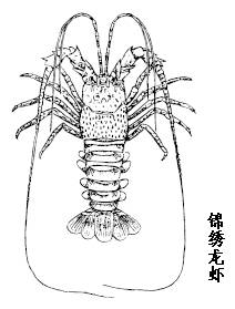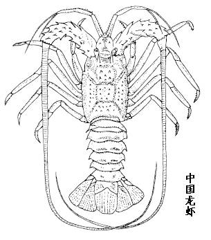 1.中国龙虾的体长200-350mm,头胸甲宽42-50mm,个别更长大,头胸甲呈半圆柱形,散布有许多大小棘刺,每个小刺的基部周围列生刚毛。无额角。眼大,无眼眶,有1对粗大而尖的眼上刺。触角板中央有一浅沟,板上有2对粗短的大棘和数对小棘,其腹面前缘具有3刺,中间一个较大。第1触角柄的第2节几达第2触角柄的末端;第2触角鞭部很长,柄部具粗刺。第1步足粗短,其余4对稍细长,各步足指节的腹侧列生刚毛,雌体第5步足的指节基部内侧生1个齿突成亚钳状。第2-4腹节背面左、右各有一较宽的横向凹陷,密生短绒毛。各腹节两侧末端有一向后弯曲的大棘,棘基部后缘生有细小锯齿。尾节呈长方形,长于内外肢,形成宽大的尾扇,其前半部背面有多数小刺和短刚毛。背甲紫褐色或橄榄绿色,上部有许多很小的白色斑点。 栖息于5-40m深的浅海岩礁间,或在泥沙质的浅海间活动。分布于浙江、福建、广东、海南及西沙群岛等沿海。 2.锦绣龙虾的体长395-550mm,头胸甲宽95-132mm,头胸甲呈圆筒形,中部较宽,刺少且短小,无毛。无眼眶,眼上刺粗大,触角板上有2对大棘,中间还有1对小棘,腹面前缘有3刺。第 栖息于水深8-15m的岩礁间或泥沙质的浅海底。夏、秋季产卵50万-100万粒,卵形小,孵出幼体头胸部宽大,腹部短小,需经数次蜕皮后,经历一游泳阶段,才长成。分布于浙江舟山群岛以南,东海、南海。 |