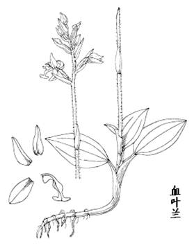 血叶兰是多年生草本,高10-25cm。根状茎肉质,匍匐伸长,粗壮,茎节明显,似蚕卧于石上,通常紫红色或黄绿色。茎基部互生2-4片叶;叶卵形或卵状长圆形,长3-7cm,宽2-3cm,上面暗绿色或紫红色,背面红色,纵脉5条和网脉均为红色或金黄色。总状花序有2-10朵花。花白色或粉红色,基部具1枚淡红色的舟状苞片;中萼片近匙形,侧萼片椭圆形,均长8mm;花瓣与中萼片等长并靠合成兜状;唇瓣弯曲,基部具囊状距,前端伸展如两翼展翅;子房被短柔毛。 生于海拔950-1000m的林下阴湿处或山沟潮湿的岩石上。分布于福建、广东、海南、广西、云南等地。 |