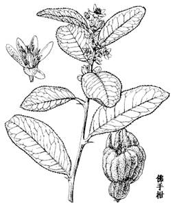 佛手柑是常绿小乔木或灌木。老枝灰绿色,幼枝略带紫红色,有短而硬的刺。单叶互生;叶柄短,长3-6mm,无翼叶,无关节;叶片革质,长椭圆形或倒卵状长圆形,长5-16cm,宽2.5-7cm,先端钝,有时微凹,基部近圆形或楔形,边缘有浅波状钝锯齿。花单生,簇生或为总状花序;花萼杯状,5浅裂,裂片三角形;花瓣5,内面白色,外面紫色;雄蕊多数;子房椭圆形,上部窄尖。柑果卵形或长圆形,先端分裂如拳状,或张开似指尖,其裂数代表心皮数,表面橙黄色,粗糙,果肉淡黄色。种子数颗,卵形,先端尖,有时不完全发育。花期4-5月,果熟期10-12月。 |