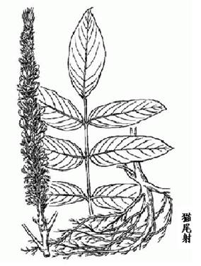 其根细长,圆柱形,有分枝,表面棕黄色,具细皱纹,支根纤细,皮部易剥离。质稍硬,折断面不平整,断面皮部棕黄色,木部淡黄色,于放大镜下观察,木部具众多小孔(导管),射线明显,呈放射状。气微,味淡。 猫尾射属亚灌木状草本,高1-1.5m。茎枝较粗,被短粗毛。奇数羽状复叶;叶柄长5-10cm;小叶柄约2mm;托叶长三角形,基部宽阔;小叶3-5,稀7;小叶片长椭圆形或卵状披针形,长5-10cm,宽2-4cm,顶端1片较大,先端尖,基部圆或微心形,上面无毛或在中脉处被毛,背面被短毛,网状脉凸出。总状花序顶生,花密集,长达30cm;苞片披针形,基部宽阔,边缘被长睫毛,下部苞片宿存,上部的伸出于花之上,花开放时即脱落;每苞片有花2朵;花萼浅杯状,5齿裂,上面2裂片较短,下面3裂延长,均被白色长硬毛,毛的基部鼓搥状;花冠紫色,长7-8mm;雄蕊10,二体,对着旗瓣的1枚分离;子房上位,花柱线形,内弯。荚果3-7节,荚节膨胀,略透明,被极短的毛。花期5-6月,果期7-10月。 |