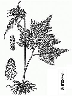 华东阴地蕨属多年生蕨类植物,植株高35-60cm,较粗壮。具短而直立的根茎。根肉质,较粗壮。叶二裂;营养叶有长柄,长10-15cm;叶片略呈五角形,草质,长12-20cm,宽15-18cm,顶端短而渐尖,三回羽状分裂;羽片约6对,最下1对羽片最大,有柄;末回小羽片或裂片为椭圆形,边缘有整齐的尖锯齿;叶脉明显,直达锯齿。孢子叶自总柄抽出,其柄常高出营养叶。孢子囊穗圆锥状,长可达10cm,二回羽状;孢子囊圆球形,无柄,横裂,孢子四面型。 |