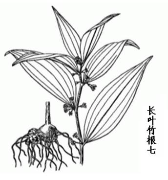 长叶竹根七属多年生直立草本,高60-100cm,无毛。根茎连珠状,粗l-2cm。叶互生,具短柄;叶片椭圆形或椭圆状被针形,长10-20(-27)cm,宽2.5-6(-10)cm,先端长渐尖或稍尾状,两面无毛。花5-10朵,簇生于叶腋,白色,近直立;花梗长12-15mm,无毛;花被长8-10mm;由于花被筒口部缢缩而略带葫芦形,裂片6,狭椭圆形,长4-6mm;副花冠裂片肉质;花药线形,长2.5-3mm,基部叉开,花丝极短,着生于副花冠裂片先端凹缺处;雌蕊长约4mm,花柱短,子房锥形。浆果三角状球形,熟时白色,具2-5颗种子。花期5-6月,果期10-11月。 |