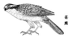 苍鹰是大型鸟类,体长约50cm。嘴黑色,基部带暗蓝色,蜡膜黄绿色。虹膜金黄色。前额以至后颈为石板灰色。羽基白色;眼上方有白色眉纹,羽轴黑色,耳羽黑色;上体为石板灰色;肩羽和尾上覆羽有白色横斑;其余杂有灰白、黑褐色斑块或横斑。下体灰白。喉有黑褐色细纹,胸、腹、两胁与覆腿羽均杂有黑褐色横斑。羽轴均为黑褐色。脚绿黄,爪锐利,黑色。 |
