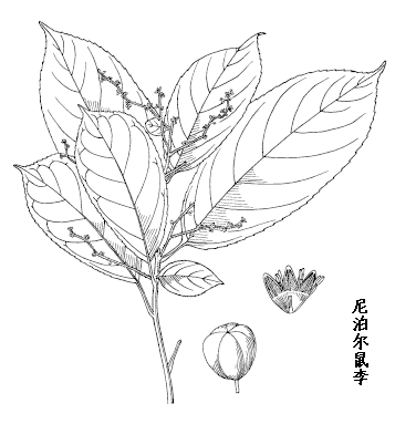 尼泊尔鼠李属直立或藤状灌木。枝无刺,幼枝被短柔毛,后脱落,小枝具多数明显的皮孔。叶互生;叶柄长1.2-2cm,无毛;叶片厚纸质或近革质,大小异形,小叶近圆形或卵圆形,长2-5cm,宽1.5-2.5cm;大叶宽椭圆形或椭圆状长圆形,长6-17(-20)cm,宽3-10cm,先端圆形,渐尖,基部圆形,边缘具钝锯齿,上面深绿色无毛,下面仅脉腋被簇毛。腋生聚伞总状花序或下部有短枝的聚伞圆锥花序,长达12cm,花序轴被短柔毛;花单性,雌雄异株,5基数;萼片长三角形,先端尖,外被微毛;花瓣匙形,先端钝或微凹,基部具爪,与雄蕊等长或稍短;雌花的花瓣早落;有5个退化雄蕊;子房球形,3室,花柱3浅裂至半裂。核果倒卵状球形,长约6mm,基部有宿存的萼筒,具3分核。种子3颗,背面有纵沟。花期5-9月,果期8-11月。