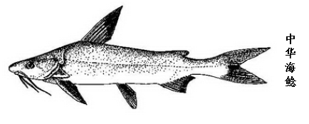 中华海鲶的体延长,头部平扁较宽,体后部侧扁。眼小,体无鳞。背鳍始于胸鳍基后上方,具1不分支和7分支鳍条,第1鳍条丝状延长,几伸达脂鳍起点。脂鳍发达。体背褐绿色。腹部银白色,各鳍灰黑色。
