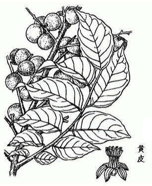 黄皮叶为芸香科植物黄皮的叶。本品为单数羽状复叶,小叶5-13片,多皱缩,破碎,黄绿色至深绿色,完整者呈阔卵形或卵状椭圆形,密布细小半透明油点及疏柔毛,长4-13cm,宽2-5cm,先端急尖或短渐尖,基部楔形至圆形,两侧不对称,叶全缘或浅波状至浅圆齿状,略反卷,叶脉于叶面凹下,于背面凸起,小叶柄被短柔毛,长2-4mm,质脆。气香,味微苦辛。 黄皮是常绿灌木或小乔木,高可达12m。幼枝、花轴、叶轴、叶柄及嫩叶下面脉上均有集生成簇的丛状短毛及长毛,有香味。奇数羽状复叶互生;小叶柄长4-8mm;小叶片5-13,顶端1枚最大,向下逐渐变小,卵形或椭圆状披针形,长6-13cm,宽2.5-6cm,先端锐尖或短渐尖,基部宽楔形,不对称,边浅波状或具浅钝齿。聚伞状圆锥花序顶生或腋生,花枝扩展,多花;萼片5,广卵形;花瓣5,白色,匙形,长不超过5mm,开放时反展;雄蕊10,长短互间;子房上位,5室,密被毛。浆果球形、扁圆形,长1.2-3cm,淡黄色至暗黄色,密被毛。种子绿色。花期4-5月,果期7-9月。