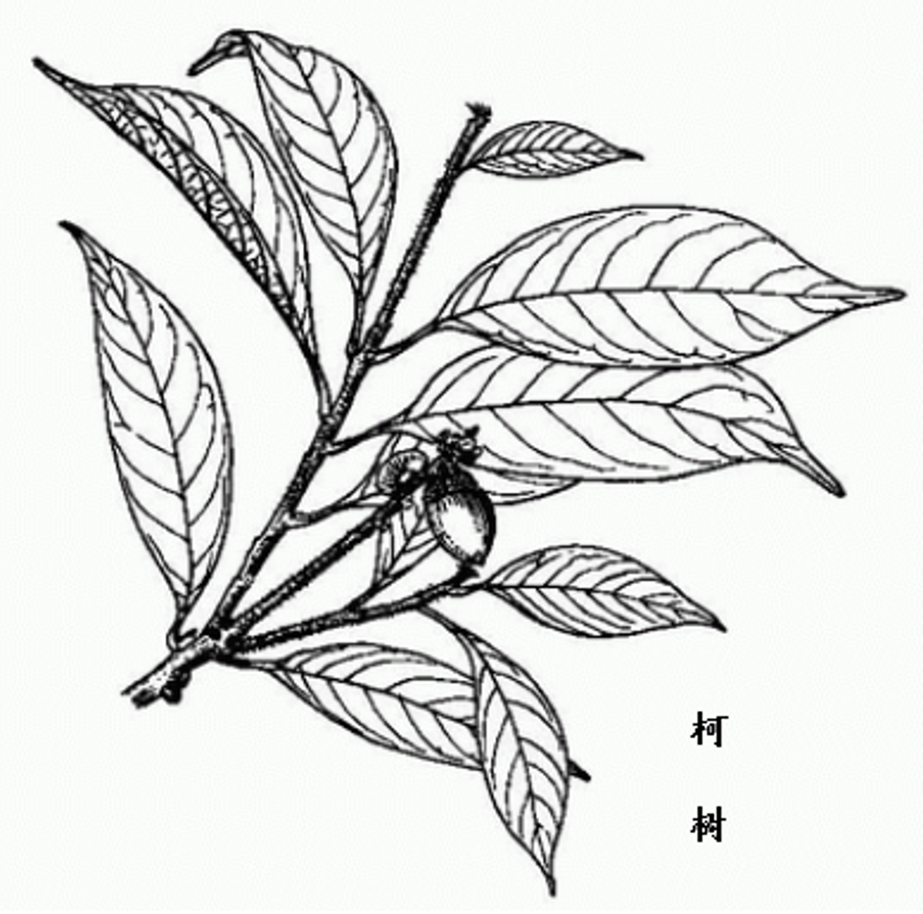 柯树属常绿乔木,高7-15m。树皮暗黑色,内皮红褐色,具脊棱。一年生枝密被灰色或黄色短绒毛,二年生枝疏被暗黑色毛。叶互生;叶柄长1-2cm,嫩时被毛;叶片革质,长椭圆形、倒卵状椭圆形或倒卵形,长6-14cm,宽2.5-4cm,先端突尖、短尾状或长渐尖,基部楔形,全缘或近顶部有2-4个浅齿,上面深绿色,光亮,下面灰白色,嫩时密被鳞毛,老时无毛,侧脉6-8对。花序单生或多个排成圆锥状,常雌雄同序,雌花位于雄花之下;雄花序长5-10cm,花极密,花被6裂,外被毛,雄蕊10-12;雌花序长10-13cm,花轴粗壮,花每3-5朵聚生,花柱3。壳斗杯形,近无柄,包围坚果基部,直径0.8-1cm,高5-6mm,鳞片小,至三角形,紧贴,略连成环状,有灰白色细柔毛;坚果长椭圆形,先端尖,被白粉,直径0.8-1.5cm,高1.5-2.5cm,果脐凹下,深达2mm,表面暗赤色,有光泽。花期9-10月,果期翌年9-10月。 |