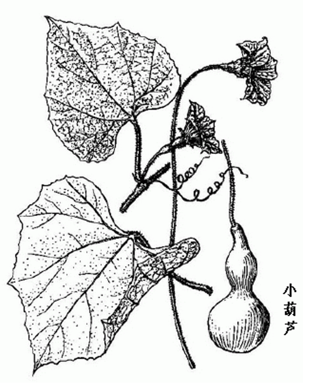 苦壶卢子为葫芦科植物小葫芦的种子。 小葫芦属一年生攀援草本。茎、枝具沟纹,被软柔毛。叶互生;叶柄长10-20cm,顶端有2腺体,被毛;卷须纤细,上部分2歧,初时被微柔毛;叶片卵状心形或肾状卵形,长、宽均10-30cm,不分裂或3-5裂,先端锐尖,基部心形,弯缺开张,边缘有不规则的齿;掌状脉5-7。雌雄花均单生;雄花花梗细,比叶柄稍长,花萼筒漏斗状,裂片披针形;花冠白色,裂往皱波状,雄蕊3,药室折曲。雌花花梗比叶柄稍短或近等长;花萼和花冠似雄花;子房中间缢缩,花柱粗短,柱头3,2裂。植株结实较多;果实哑铃状,下部大于上部,长不足10cm。花期7-8月,果期8-9月。