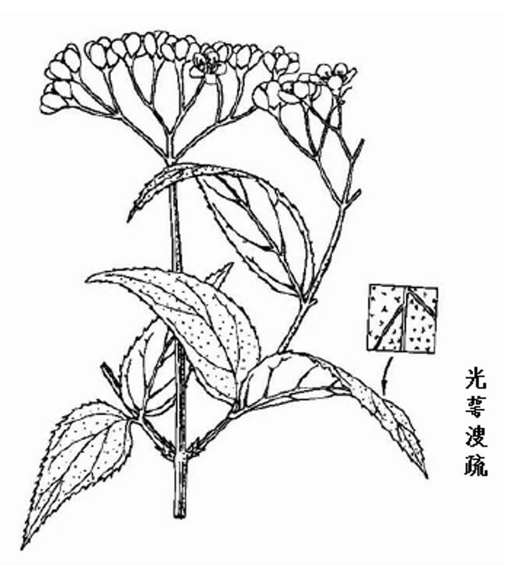 崂山溲疏为虎耳草科植物光萼溲疏的枝叶。 光萼溲疏属落叶灌木,高约3m。全株无毛。老枝灰褐色,小枝棕赤色,皮薄,易脱落。叶对生,薄纸质;叶柄短;叶片长椭圆形或卵状披针形,长4-12cm,宽2-4.8cm,先端渐锐,基部宽楔形或圆形,边缘有不等大的小锯齿,上面无毛或被星状毛。伞房花序生于顶端;萼片5,无毛,边缘被微柔毛;花瓣5,覆瓦状排列,白色,圆形而展开;雄蕊10,花丝无齿;子房下位,3室,花柱3-4,分离。蒴果,瓣裂。种子微小,多数。花期5月,果期7-8月。