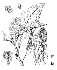 化合物成分:商陆种甙(esculentoside)A、B、C、D、E(即是美商陆甙G,phytolaccoside G)、F、H、K、L、O、P、Q、J、M、I、N及G,美商陆甙E,商陆种酸(esculentic acid),美商陆酸(phytolaccagenic acid),2-羟基商陆酸(jaligonic acid, dimethyl phytolaccagenin),美商陆皂甙元(phytolaccagenin),2,23,29-三羟基齐墩果酸(esculentagenic acid),商陆种甙元(esculentagenin),-氨基丁酸( -aminobutyric acid),-菠菜甾醇( -spinasterol)、7-豆甾烯醇(7-stigmastenol)及它们的葡萄糖甙和酰化甾醇葡萄糖甙,脂酸部分包括棕榈酸(palmitic acid),硬脂酸(stearic acid)及肉豆蔻酸(myristic acid),2-乙基-正己醇(2-ethyl-1-hexanol),2-甲氧基-4-丙烯基苯酚(2-methoxy-4-propenylphenol),邻苯二甲酸二丁酯(dibutylphthalate),棕榈酸乙酯(ethyl palmitate),带状网翼藻醇(zonarol),2-单亚油酸甘油酯(2-monolinolein),油酸乙酯(ethyloleate),棕榈酸十四醇酯(tetradecylpalmitate),齐墩果酸(oleanolic acid),2-哌啶甲酸(pipecolinic acid)等。 药理作用: 镇静催眠。 镇痛,解热、降温,抗炎,抗细菌,抗病毒,抗真菌。 降压。 镇咳,平喘,祛痰。 抗胃损伤、抗溃疡。 抗辐射。 利尿,改善肾功能。 免疫调节,促进合成代谢抗肿瘤。 |
