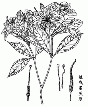 丝线吊芙蓉为杜鹃花科植物毛棉杜鹃花的根皮、茎皮。