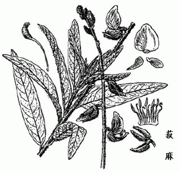 太阳麻根为豆科植物菽麻的根。 菽麻为一年生草本,高1-2m。茎直立,具小沟纹,密生绢状短柔毛。单叶互生;叶柄长2-3mm;托叶狭披针形,长1-2mm;叶片长圆状披针形或长圆形,长5-10cm,宽1.5-2.3cm,先端具短尖头,基部圆楔形,两面密生棕色绢状短柔毛。总状花序顶生或腋生,长达20cm,有花12-20朵;小苞片生于萼的基部,细小,密被绢状短柔毛;萼长约2cm,被毛,萼齿长约为萼的3/4;蝶形花冠,黄色,长约2.6cm;雄蕊10,花药异型;子房被毛。荚果圆柱形,长3-4cm,密生绢状短柔毛。种子10-15颗。花期7-8月,果期9-10月。
