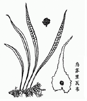 乌苏里瓦韦为水龙骨科植物乌苏里瓦韦的全草。 乌苏里瓦韦的植株高10-20cm。根茎细长,横生,密被黑色或近黑色、披针形不透明的鳞片,边缘有锯齿。叶远生;叶柄长2-4cm;叶片厚纸质,狭披针形或线状披针形,向两端渐变狭,上端长渐尖,基部沿叶柄缓下延,中部宽5-10mm;中脉两面隆起,小脉不明显。孢子囊群小,圆形,背生于中脉与叶边之间各排成1行,彼此分离,幼时有盾状隔丝覆盖。 |