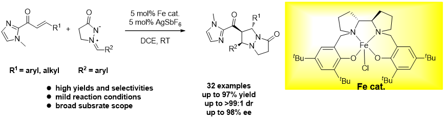 Fe-BPsalan complex-catalyzed asymmetric 1,3-dipolar [3 + 2] cycloaddition reaction of N,N’-cyclic azomethine imines with α,β-unsaturated acyl imidazoles