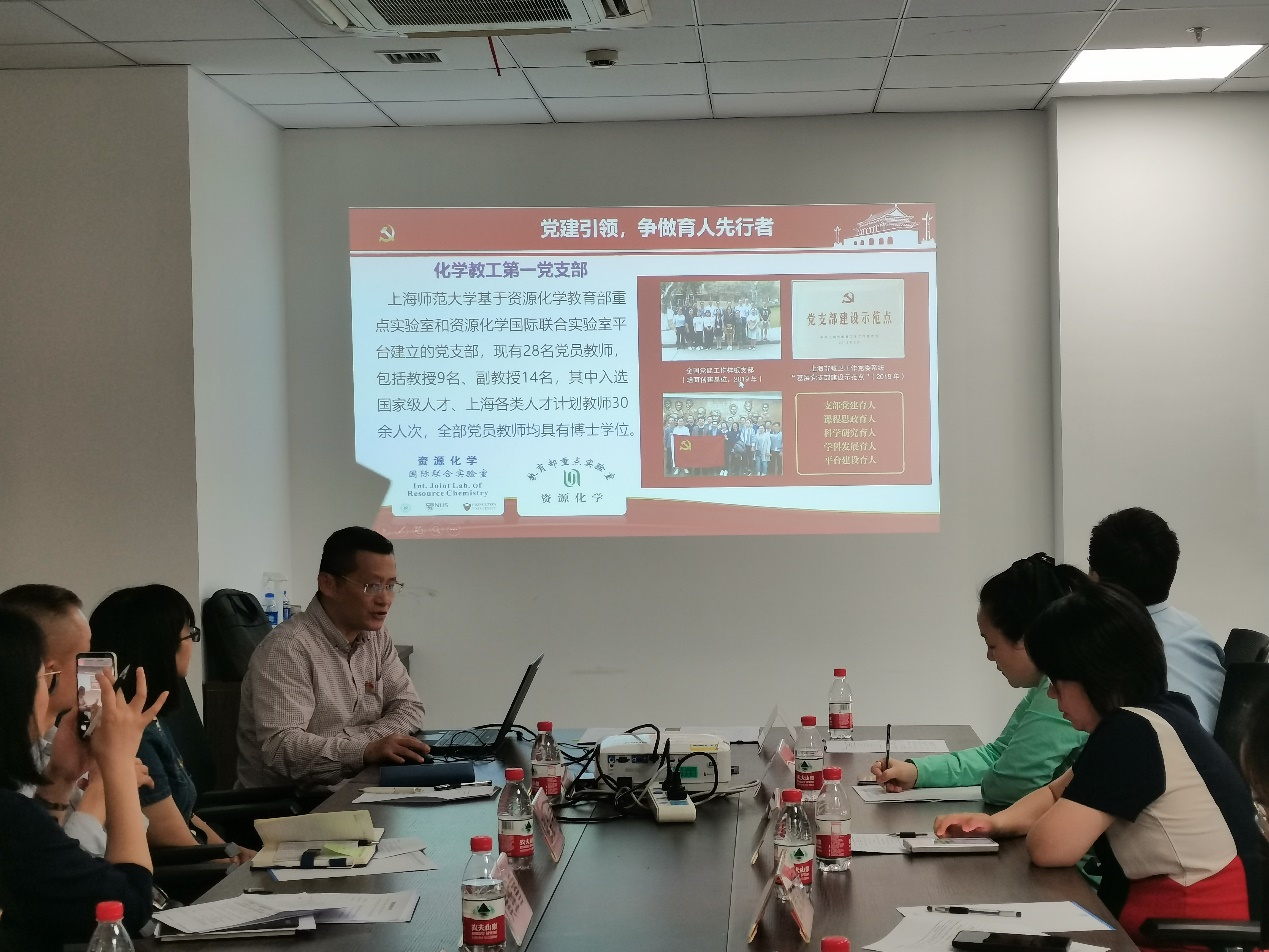 此次活动由中国科学院上海有机所生命过程第一党支部副书记黄维雪主持,上海有机所生命过程第一支部纪检委员徐兰婷,组织委员郝柯嘉,宣传委员陈伊涵,青年委员罗邦科,支部党员骨干张金伟研究员,王震研究员,张祎昕副研究员;以及上海师范大学化材学院党委副书记兼副院长臧艳雯,化学教工第一党支部书记贾能勤,化学教工第二党支部书记应叶等参加了活动。