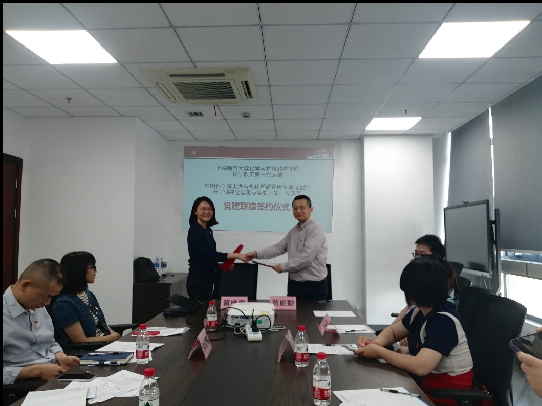 2023年6月3日, 为深入挖掘在履行国家战略科技力量职责使命、加快抢占科技制高点进程,以党纪学习教育、提升党风廉政建设水平为切入点,中国科学院上海有机化学研究所生命过程小分子调控全国重点实验室第一党支部与上海师范大学师范大学化学与材料科学学院化学教工第一、第二党支部举办了联建签约仪式,并举办了“牢记使命,科技强国”主题党日联学活动。