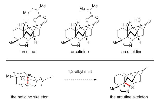 图1. Arcutine家族代表性成员的结构以及hetidine骨架和arcutine骨架之间的生源关系