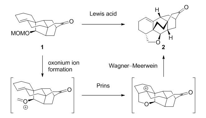 图2. 将hetidine骨架转化为arcutine骨架的Prins/Wagner−Meerwein串联反应