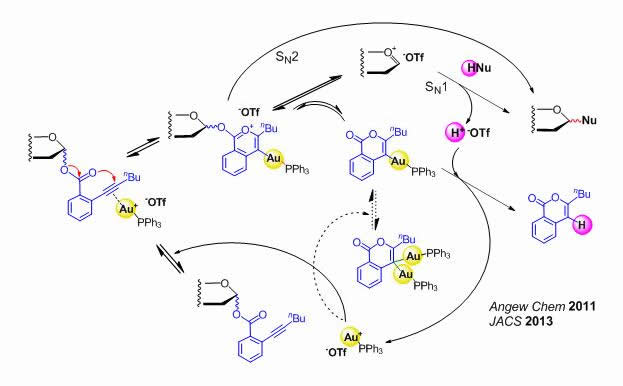 图1. 该糖苷化反应的催化活化机理