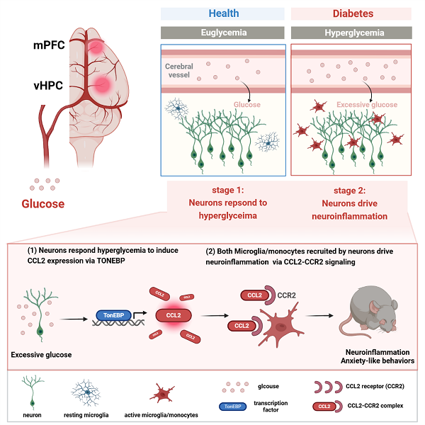 李佳课题组与合作者发现高血糖刺激神经元分泌CCL2是糖尿病诱发焦虑障碍的关键机制