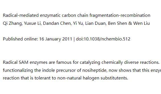 Radical-mediated enzymatic carbon chain fragmentation-recombinationQi Zhang, Yuxue Li, Dandan...