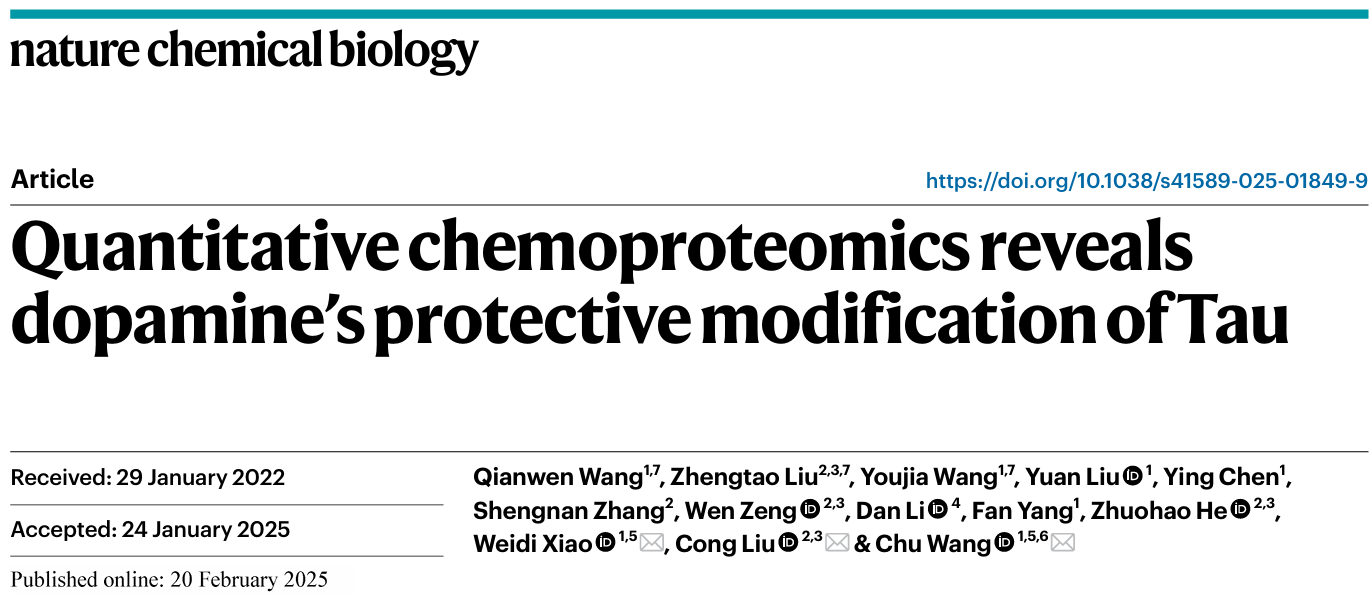 Nat Chem Bio | 刘聪课题组与合作者发现多巴胺修饰调控阿尔兹海默病Tau蛋白功能的关键作用