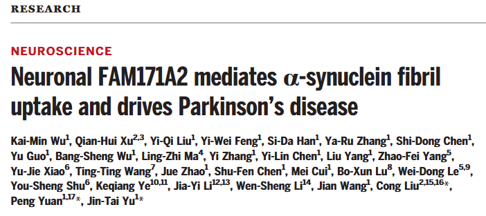 Science | 刘聪课题组与合作者发现帕金森病治疗的潜在新靶点FAM171A2