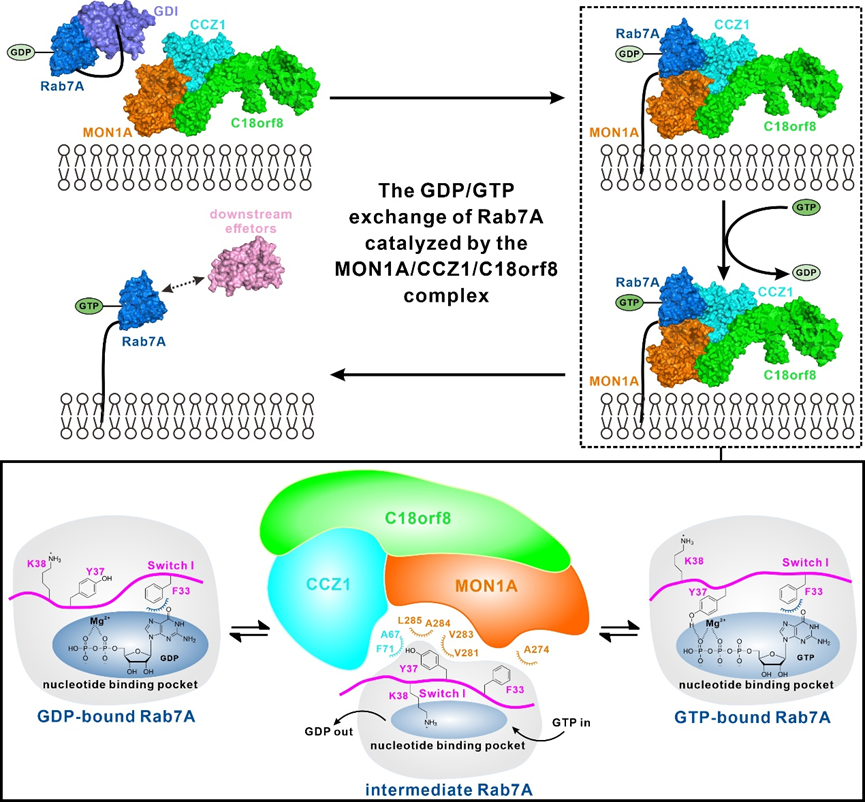 潘李锋、张一小课题组合作在人源MON1A/CCZ1/C18orf8复合物识别和激活Rab7A的分子机制方面取得新进展