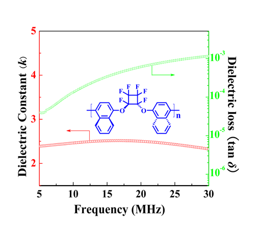 基于含氟聚合物的诸多优异特性,尤其是C-F键极化率较低,有望在超低k材料中得到应用。已知的含氟材料中,聚四氟乙烯具有低至2.0的介电常数,但是其加工性能差、耐热和力学性能亦不佳。为了获得新型的low k材料,上海有机所房强课题组开发出一种新型含氟聚合物PFN, 其在30 MHz下,介电常数仅为2.33,是目前聚合物材料中,为数不多的低介电品种。该成果近期在线发表在:Advanced Materials(DOI: 10.1002/adma.201302021)。