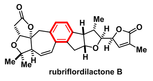 生命有机化学国家重点实验室李昂课题组近期完成了五味子降三萜rubriflordilactone B的全合成 (Total synthesis of rubriflordilactone B, Angew. Chem. Int. Ed. 2016, 55, 6964–6968)。该分子的结构特征是在七环骨架的中心具有一个四取代的芳环。课题组杨鹏等人采取了汇聚式的合成策略:左右片段分别通过易得光学活性原料制备,两片段再通过Sonogashira偶联反应连接,形成高度不饱和的烯-炔-烯-烯体系。该体系中碳碳三键的顺式氢化较难控制且不易放大,而铂催化的顺式硅氢化反应在此体系上显示出温和高效、高选择性和易于放大的特点,且含硅的顺式烯烃的稳定性显著提高。最后经过6π电环化反应-氧化芳构化以及脱硅反应,顺利实现了rubriflordilactone B的全合成。合成样品与天然样品的晶体结构完全一致。虽然最终目标分子具有四取代芳环,但是考虑到碳−硅键易于在后期转化成碳−氢键以外的碳−氧键、碳−卤键和碳−碳键,该合成事实上从策略角度提供了一种高效构建五取代芳环的解决方案。