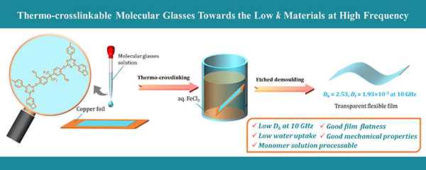 图 低介电分子玻璃材料的化学结构及其加工成膜的示意图