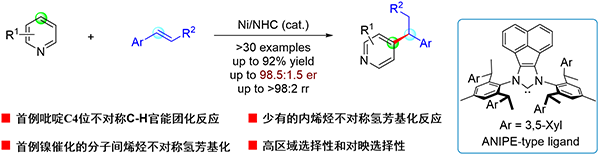 图1 镍催化的吡啶对位不对称C-H烷基化反应