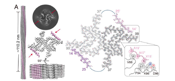 图1. 冷冻电镜技术与固态核磁技术联用表征病理蛋白淀粉样纤维组装聚集及与结合蛋白互作的分子机制