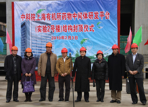 2月3日,上海有机所在建的“药物中间体研发平台(综合实验2号楼)”举行了结构封顶仪式。