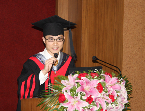 贺虎同学在热烈的掌声中代表全体毕业生发表了感人肺腑的毕业感言,真切表达了对母校的热爱之情,对导师的崇敬之情,对家人、亲友的感谢之情,和对同窗几载同学们的依依惜别之情!毕业生代表的毕业感言充分体现了有机所研究生的良好素质和作为新时代年轻人积极进取的精神风貌。